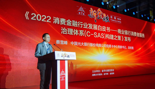 2023年1月6日,在第七屆新金融論壇上,瞭望智庫聯(lián)合中國光大銀行共同發(fā)布了《2022消費金融行業(yè)發(fā)展白皮書——商業(yè)銀行消費者服務(wù)治理體系(C-SAS)構(gòu)建之策》(下稱《白皮書》),中國光大銀行股份有限公司信用卡中心黨委書記、總經(jīng)理蔡雪峰對《白皮書》進行了詳解。