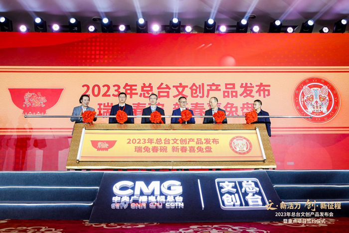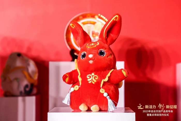 中新網(wǎng)北京1月9日電 1月8日,“2023年總臺文創(chuàng)產(chǎn)品發(fā)布會暨重點項目簽約儀式”在北京舉行,中央廣播電視總臺春晚吉祥物“兔圓圓”,和總臺文創(chuàng)兔年生肖形象“兔團團”等產(chǎn)品首次對外亮相。