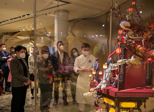 出席開幕儀式的主禮嘉賓在「中國糖王」中式翻糖手藝人周毅帶領下參觀展覽