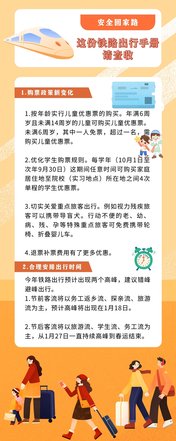 1月7日,為期40天的2023年春運正式啟動。從目前的車票預售情況看,今年的春運客流高峰發(fā)送量或?qū)⑦_到2019年疫情前水平。鐵路出行有哪些注意事項,哪些東西不能帶上火車?如何做好個人健康防護?這份出行手冊請查收。(新華社)