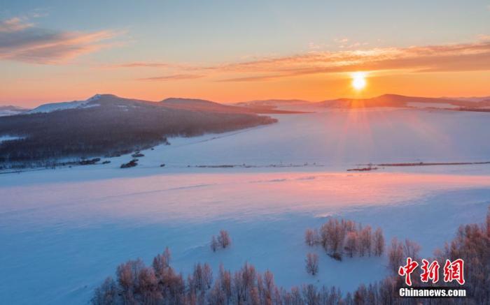 圖為晚霞映射下的內(nèi)蒙古大興安嶺如夢如幻。 李明 攝
