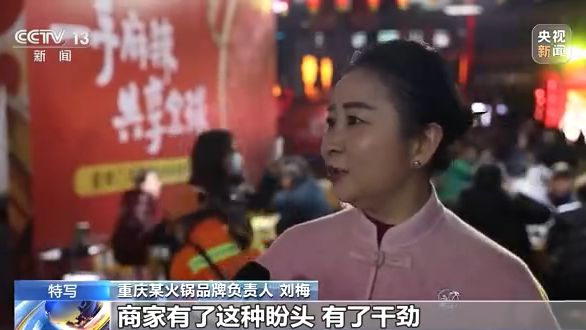 重慶市商務(wù)委員會(huì)服務(wù)業(yè)發(fā)展處副處長(zhǎng) 張毓益:這一周來(lái)看,還是有一點(diǎn)點(diǎn)超出我們的預(yù)期,這也和我們重慶人喜歡熱鬧,喜歡大家出來(lái)聚會(huì)這種性格有關(guān)系。這一點(diǎn)也是讓我們看到了迅速走出前段時(shí)間的經(jīng)營(yíng)困境非常好的一個(gè)利好信號(hào)?! ?/p>