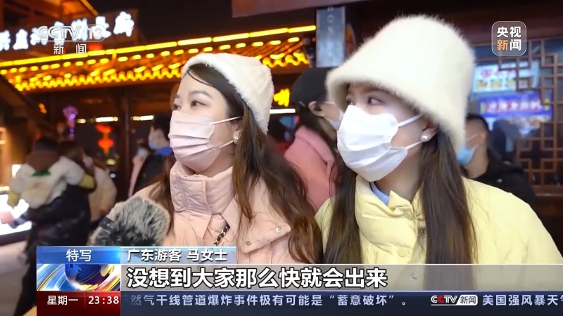 重慶洪崖洞景區(qū)管理公司副總經(jīng)理 孟瑤:本來(lái)按照我們的預(yù)估,可能會(huì)在今年的二到三月份,游客量會(huì)有一個(gè)明顯的回升。元旦的第一天和第二天,我們的客流分別已經(jīng)達(dá)到了6.4萬(wàn)和6.2萬(wàn),已經(jīng)回到了2019年的客流的同期水平,甚至已經(jīng)超過(guò)了17%。
