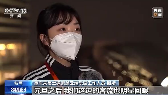 重慶來(lái)福士探索艙云端樂(lè)園工作人員謝婧:元旦之后,我們這邊的客流也明顯回暖,同比疫情之前客流明顯回暖到7成左右?! ?/p>