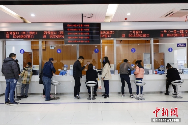 1月9日,在上海市公安局長寧分局出入境接待大廳,市民有序辦理個人業(yè)務(wù)。中新社記者 殷立勤 攝