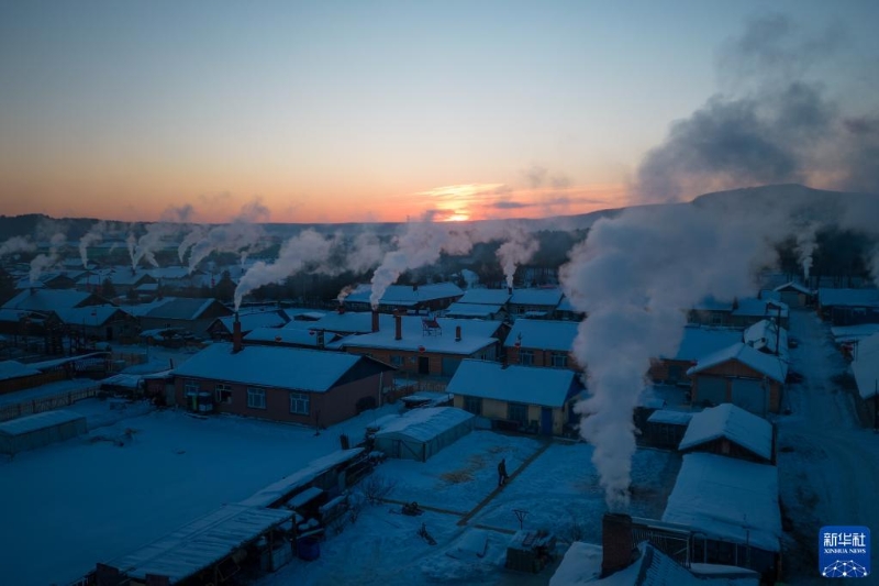 這是1月8日拍攝的漠河市北極村的清晨景象(無人機照片)。