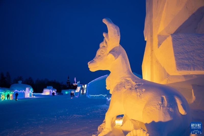1月7日,游客在漠河市北極村冰雪童話世界內(nèi)游玩。