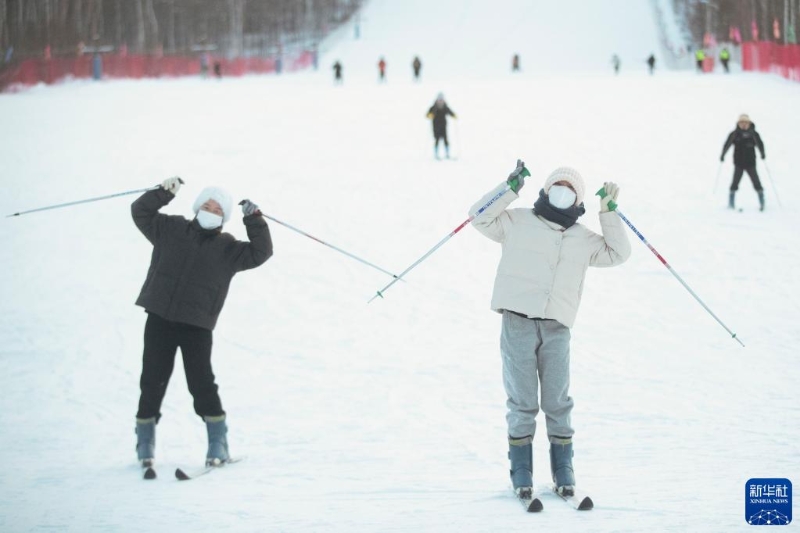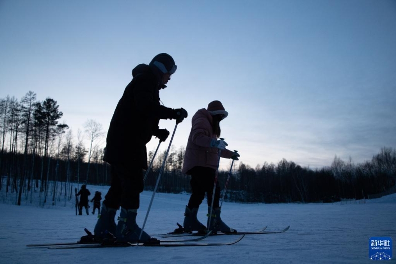 1月7日,游客在漠河市北極村滑雪場內(nèi)體驗滑雪。