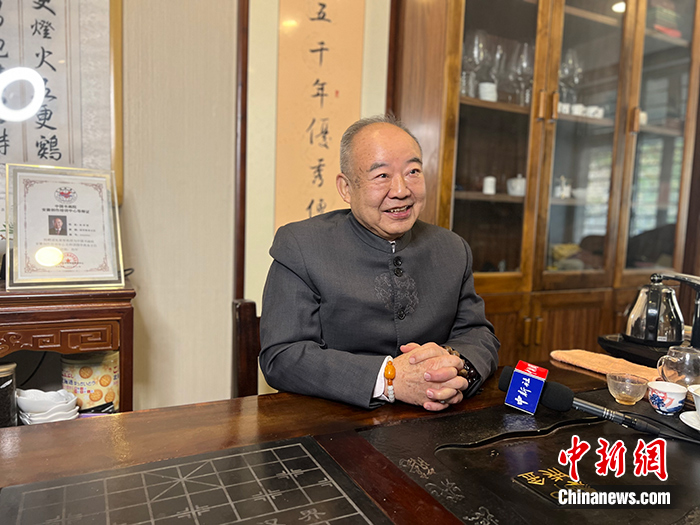 圖為1月5日,朱榮智在安徽合肥的薪傳文化會館中接受記者采訪。 中新社記者 儲瑋瑋 攝