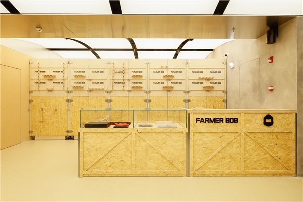FARMER BOB全球首家旗艦店同時具備潮流零售、藝術(shù)展覽、咖啡休閑等功能,設(shè)計的出發(fā)點在于將原本單一的售賣展示功能,拓展成與年輕潮流消費者互動交流的功能,為消費者提供了更靈活的路徑和更多的社交可能,獲得了Z世代年輕人的共鳴。