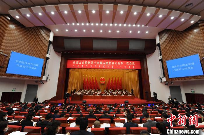 圖為內(nèi)蒙古自治區(qū)十四屆人大一次會(huì)議開幕現(xiàn)場(chǎng)?!№n卿立 攝
