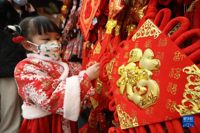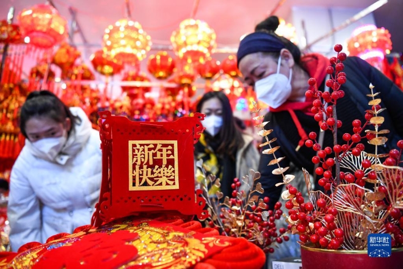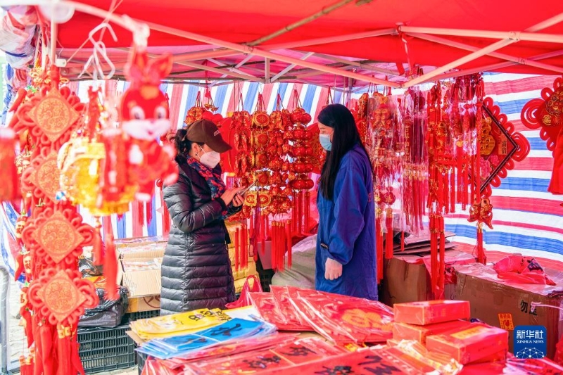 春節(jié)臨近,人們紛紛開始置辦年貨迎接節(jié)日的到來,年貨市場內一派紅紅火火的喜人景象。新華社發(fā)(侯崇慧 攝)