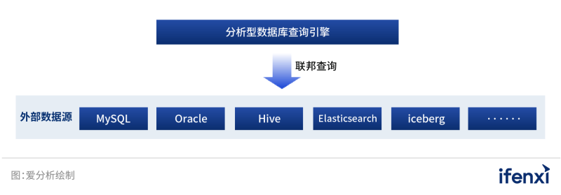 針對企業(yè)多數(shù)據(jù)源的情況,一些分析型數(shù)據(jù)庫提供聯(lián)邦查詢的功能,支持查詢多源數(shù)據(jù)。外表聯(lián)邦查詢功能通過只保存表對應的元數(shù)據(jù),并直接向所在數(shù)據(jù)源發(fā)起查詢,避開了數(shù)據(jù)遷移工作,并且實現(xiàn)了數(shù)據(jù)層面的整合分析。