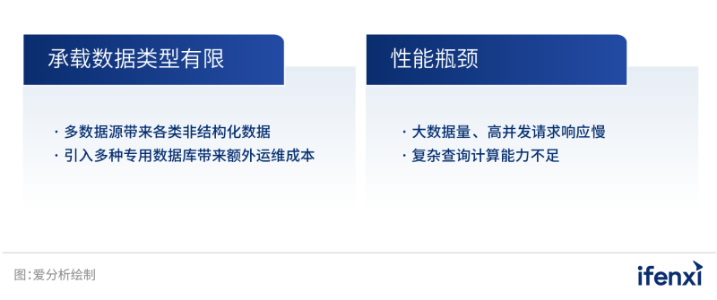 在數(shù)字化轉(zhuǎn)型的驅(qū)動下,中大型企業(yè)在復雜多樣的業(yè)務場景下沉淀了海量多源異構的數(shù)據(jù),而且由于業(yè)務持續(xù)擴張增長的趨勢,部分企業(yè)需要不斷加強數(shù)字化建設的力度來匹配業(yè)務的發(fā)展速度。在這種情況下,中大型企業(yè)現(xiàn)有的數(shù)據(jù)庫解決方案在企業(yè)需求的增長下變得愈發(fā)難以為繼。具體而言,業(yè)務的極速發(fā)展和數(shù)字化帶來數(shù)據(jù)規(guī)模膨脹、數(shù)據(jù)類型多樣化使得現(xiàn)有的數(shù)據(jù)庫設施遇到了以下方面的難題: