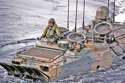 日本水陸機動團參加美日聯(lián)合軍事演習。