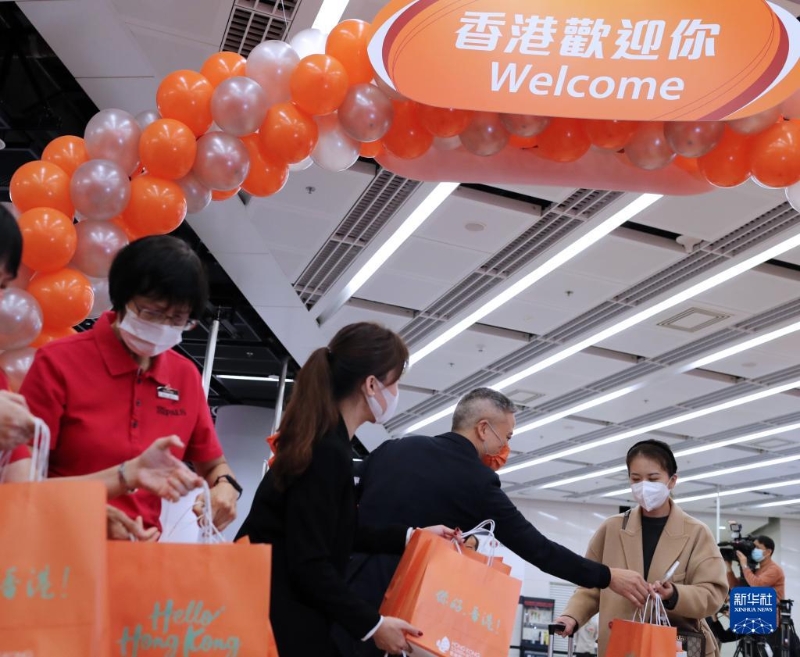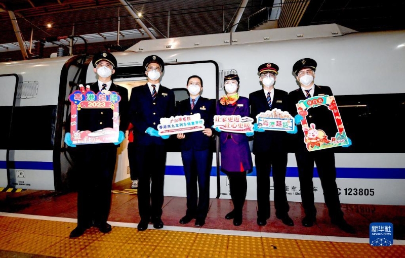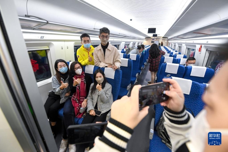 當(dāng)天,在香港西九龍站,曾經(jīng)冷清的車站變得熱鬧起來,不少旅客拖著沉甸甸的行李箱,雖然戴著口罩,但從眉眼中仍能看出他們踏上旅途的喜悅。