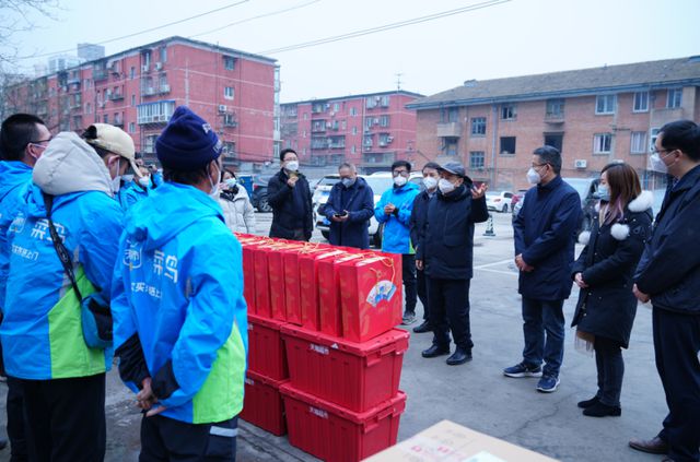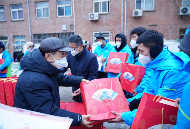 在走訪調(diào)研期間,楊志明一行向 “菜鳥快遞小哥”送上了新春健康禮包,包括慰問(wèn)品和以防疫科普為主題的年畫,祝福他們過(guò)一個(gè)健康平安年。
