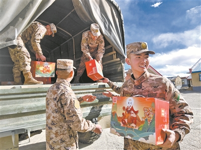 1月10日,一批由重慶市江北區(qū)精心準(zhǔn)備的年貨抵達(dá)西藏軍區(qū)某邊防團(tuán)昆木加哨所。年貨禮包里不僅有重慶特產(chǎn),還有江北區(qū)玉帶山小學(xué)學(xué)生為邊防官兵創(chuàng)作的詩歌、書畫作品及慰問信。