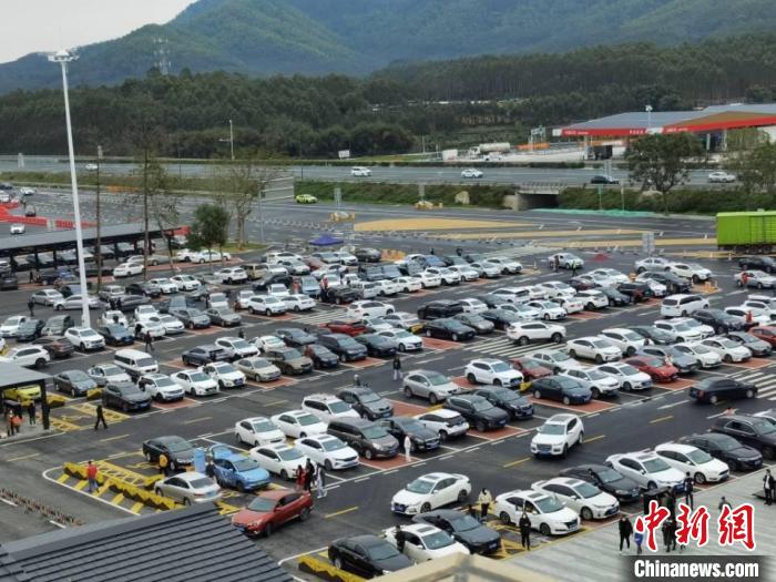 在位于僑鄉(xiāng)廣東江門的開陽高速公路梁金山服務(wù)區(qū),隨著返鄉(xiāng)客流增加,車流量和人流量明顯增多。16日中午時(shí)分,擁有1295個(gè)停車位的梁金山服務(wù)區(qū),記者在現(xiàn)場看到過半已被使用。