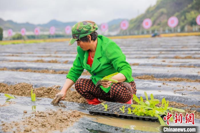 農(nóng)戶在淳安縣·明康匯百村萬畝億元產(chǎn)銷共同體示范基地移栽萵筍 李小英 攝