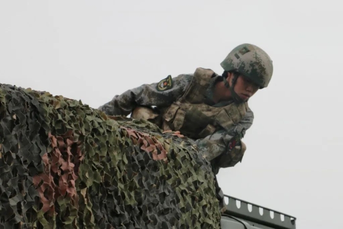 盛夏的齊魯大地,一場野外戰(zhàn)術(shù)綜合演練正在如火如荼地進(jìn)行。行軍途中,指揮所突然傳來命令——“敵機偵察,立即展開偽裝!”接到任務(wù),女兵們迅速做出反應(yīng),派出警戒、卸載物資、鋪設(shè)偽裝……人員分工明確、密切配合,在規(guī)定時間內(nèi)高標(biāo)準(zhǔn)完成偽裝任務(wù)。
