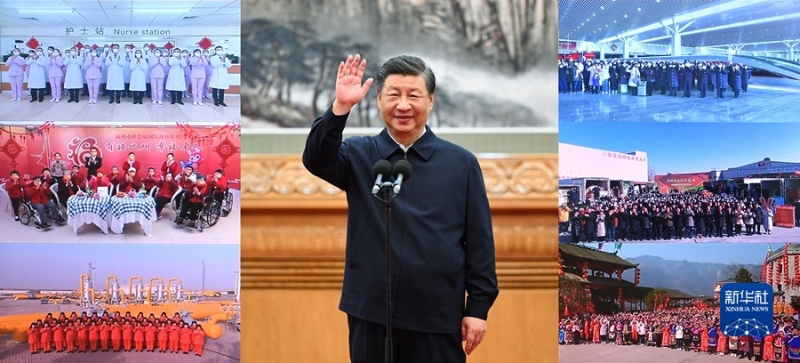 臨近春節(jié),神州大地處處洋溢著節(jié)日的喜慶氣氛。1月18日上午,習近平在人民大會堂東大廳,同黑龍江、福建、新疆、河南、北京、四川等地基層干部群眾視頻連線,看望慰問防疫一線的醫(yī)務人員、福利院的老年朋友、能源保供企業(yè)的員工、高鐵站的干部職工、農(nóng)產(chǎn)品批發(fā)市場的商戶和群眾、鄉(xiāng)村基層的干部群眾,給大家送去黨中央的關心和慰問。