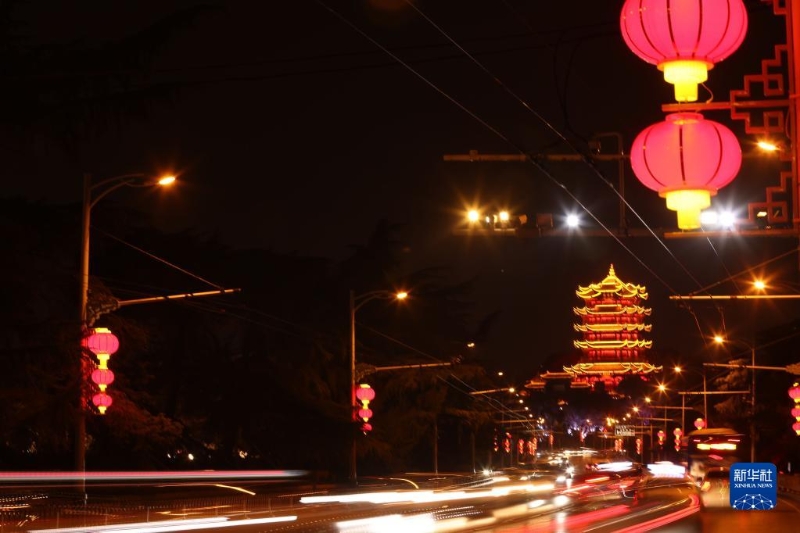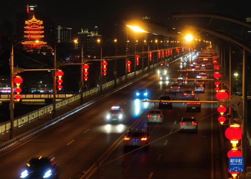 湖北省武漢市黃鶴樓附近路段夜景(1月17日攝,無人機(jī)照片)。