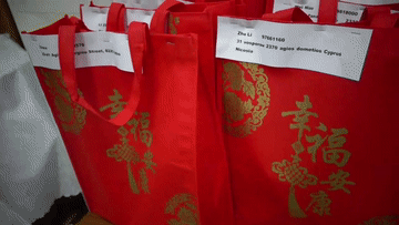 中國駐紐約總領(lǐng)館早在半年前就啟動了“春節(jié)包”準(zhǔn)備工作。獨具中國特色的帆布包內(nèi),不僅有福字、對聯(lián)、花生、瓜子等,還有醫(yī)用口罩以及總領(lǐng)館領(lǐng)事保護(hù)和公共外交宣傳卡,叮囑同胞們節(jié)日期間不忘防疫,注意人身和財產(chǎn)安全,度過一個健康平安、踏實溫暖的兔年春節(jié)。