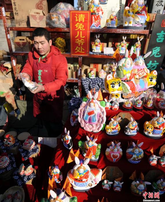 中國人的兔崇拜雖有一定神靈崇拜特征,但總體仍是十分世俗的。以北京為例,北京人崇拜兔兒爺,但孩子們也把兔兒爺當(dāng)玩具和陪伴。兔兒爺出現(xiàn)在泥塑作品、木刻版畫等各類藝術(shù)品上,一直是春節(jié)廟會上的“網(wǎng)紅”,成為北京發(fā)展勢頭最盛的民俗用品之一。兔兒爺?shù)倪@些特點,反映中華傳統(tǒng)文化與北京地域文化相結(jié)合形成的民俗現(xiàn)象,成為春節(jié)民俗活動的重要載體,與人們生活的聯(lián)系也更加緊密深入。