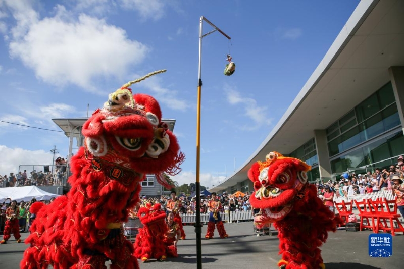 這是1月21日在新西蘭奧克蘭舉行的迎接中國(guó)農(nóng)歷春節(jié)活動(dòng)上拍攝的舞獅表演。
