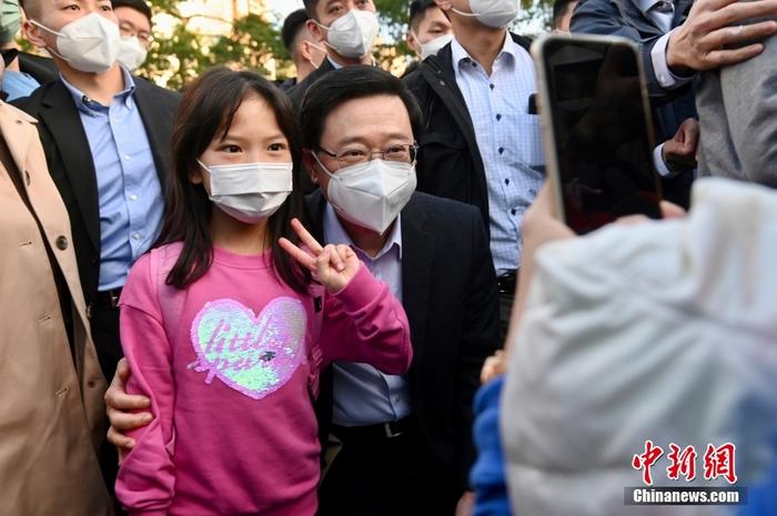1月20日為農(nóng)歷臘月二十九,香港特區(qū)行政長官李家超來到維多利亞公園逛年宵花市,受到現(xiàn)場市民歡迎并合照留念。李家超說,到維園主要是與市民見面并感受花市氣氛,有不少市民表示氣氛好,他相信兔年香港氣氛會更好。圖為女孩與李家超合影。 中新社記者 李志華 攝