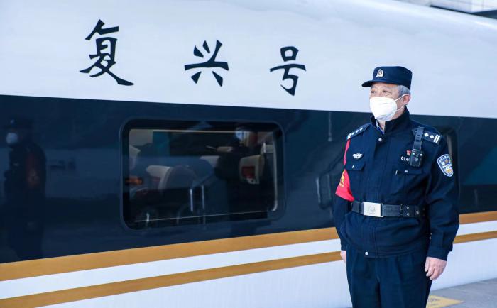 鬢發(fā)染霜,眼神清澈。2023年春運,這是乘警謹(jǐn)洪喜的最后一個春運。歲月不居,寒來暑往,他跟著火車上南來北往跑了半輩子,就要到達(dá)從警終點站。他的春運之路從綠皮煤車始發(fā),在復(fù)興號高鐵終到。站臺上,老乘警挺身立崗看向前方,車窗里,留下他春運最后的身影。