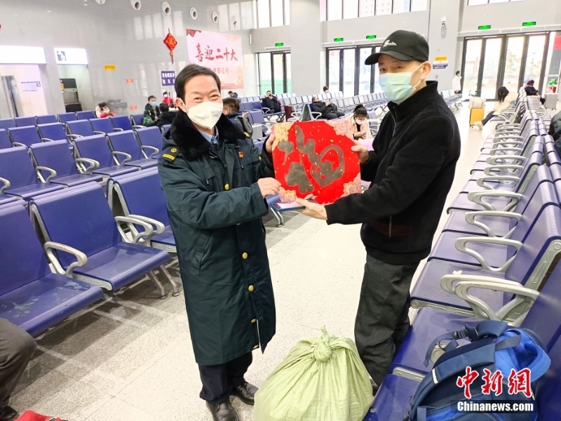 春節(jié)前,河南省潢川縣潢川火車站,聯(lián)合潢川縣藝術(shù)館,為旅客開展送“?!被顒?dòng)。