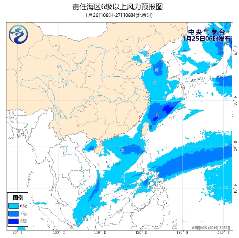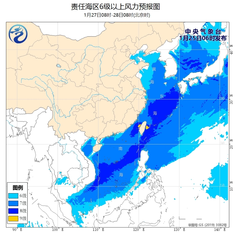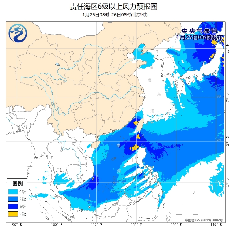 25日白天至夜間,臺(tái)灣海峽、臺(tái)灣以東洋面、巴士海峽、南海大部海域?qū)⒂?~8級(jí)、陣風(fēng)9級(jí)的大風(fēng),其中臺(tái)灣海峽、巴士海峽、南海東北部和西南部的部分海域風(fēng)力可達(dá)9級(jí)、陣風(fēng)10~11級(jí)。中央氣象臺(tái)1月25日06時(shí)解除《海上大風(fēng)黃色預(yù)警》,開始發(fā)布《海上大風(fēng)預(yù)報(bào)》。