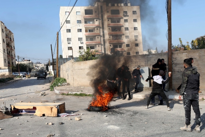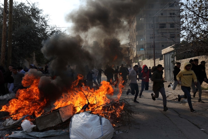 1月26日,在約旦河西岸北部城市杰寧,巴勒斯坦抗議者與以色列軍隊(duì)發(fā)生沖突。新華社發(fā)(艾曼·努巴尼攝)