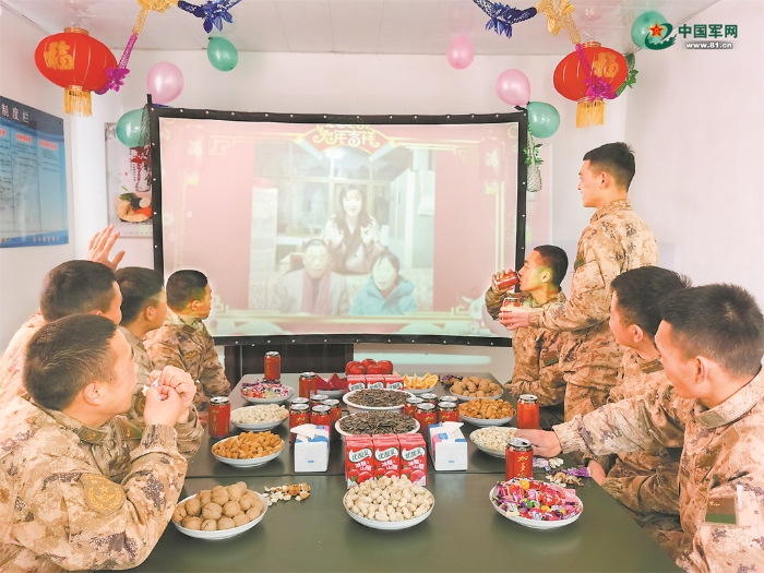 春節(jié)前夕,木孜邊防連戰(zhàn)士們與家人“云視頻”。