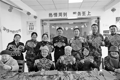 新春佳節(jié)到來之際,江蘇省徐州軍分區(qū)聯(lián)合徐州市退役軍人事務局,邀請當?shù)厥止に嚾俗哌M江蘇省軍區(qū)第五離職干部休養(yǎng)所,組織捏泥人、剪窗花等豐富多彩的文化活動。胡紹武攝