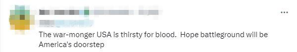 有網(wǎng)友評論稱,“戰(zhàn)爭販子美國渴望鮮血。希望戰(zhàn)場就在美國家門口?!?/p>