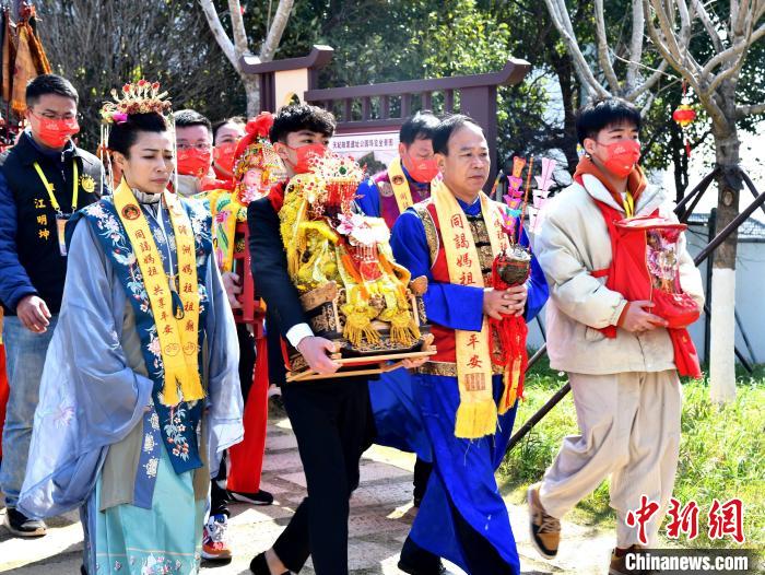 “媽祖賜福,歡慶元宵”——湄洲祖廟媽祖金身回上林故居省親布?;顒蝇F(xiàn)場,媽祖金身起駕出巡?!堺惷鞴﹫D