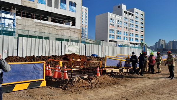 1月30日,韓國(guó)仁川一處工地挖出美軍航空炸彈。(仁川消防局)