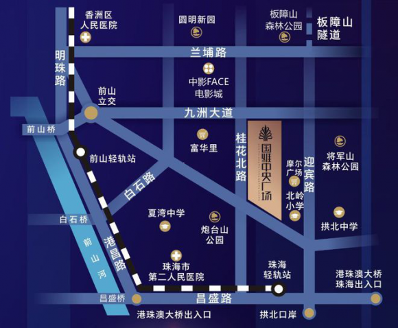 國維中央廣場項(xiàng)目位于九州商貿(mào)中心的核心區(qū)位,北臨九州大道,西臨桂花北路,南至嶺南路。廣場所處的九州大道接駁多條城區(qū)核心主干道,四通八達(dá)。通過九州大道向西,可快速通達(dá)橫琴、前山、南灣、金灣、斗門片區(qū),向東直達(dá)吉大、新老香洲片區(qū)。