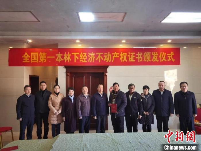 全國第一本林下經(jīng)濟不動產(chǎn)權(quán)證書頒發(fā)儀式?!≌钠饺诿襟w 供圖