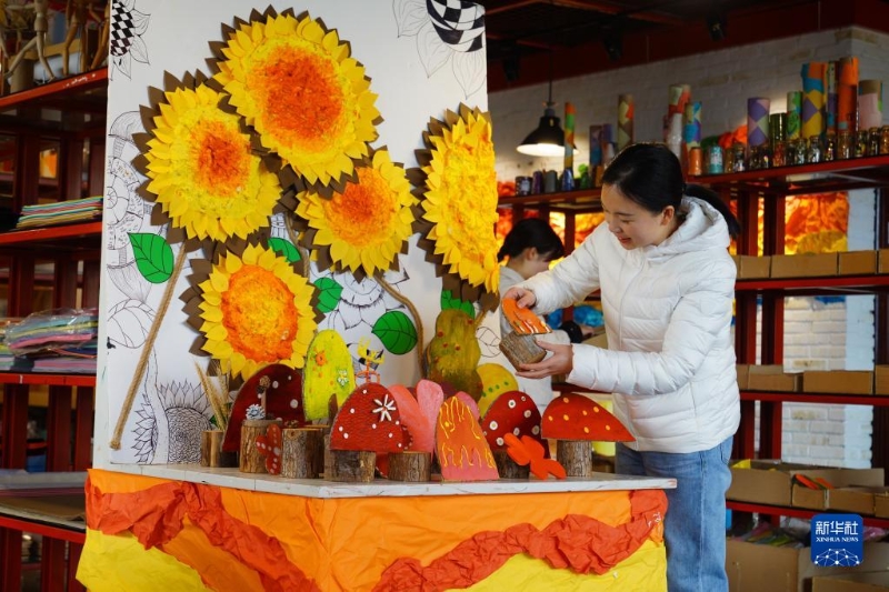 1月31日,在重慶市北碚區(qū)一家幼兒園,一名教師在整理教具。