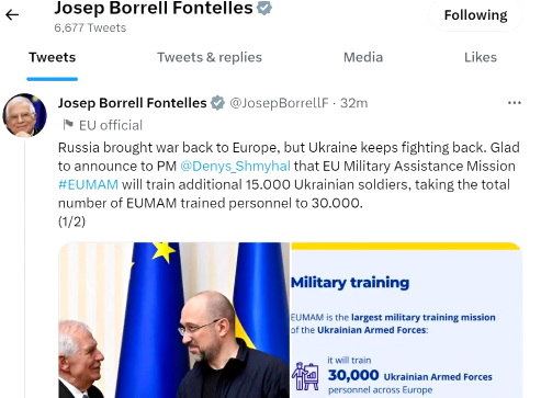 據(jù)烏克蘭媒體報道,歐洲安全與外交政策高級代表博雷利2日與烏克蘭總理什梅加爾會見后在社交媒體上宣布,歐盟將增加幫助培訓(xùn)烏克蘭軍人的計劃,從總?cè)藬?shù)1.5萬人增加到3萬人。歐盟還將提供針對豹式坦克在內(nèi)的新裝備和技術(shù)培訓(xùn)。