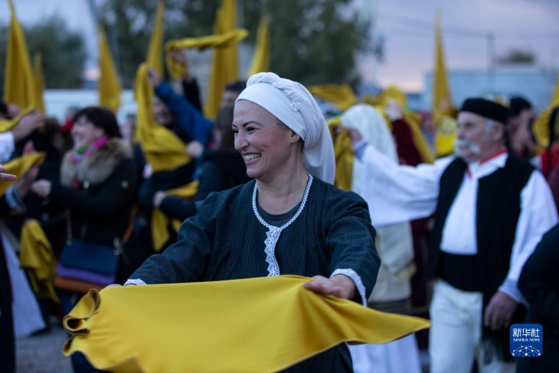 2月4日,在希臘雅典西部的埃萊夫西斯,人們?cè)诖涎葑嘁魳?,慶祝2023“歐洲文化之都”活動(dòng)開啟。