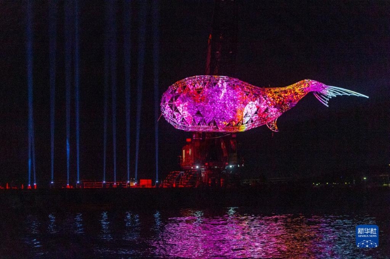 這是2月4日在希臘雅典西部的埃萊夫西斯的慶典現(xiàn)場(chǎng)拍攝的巨型機(jī)械鯨魚。