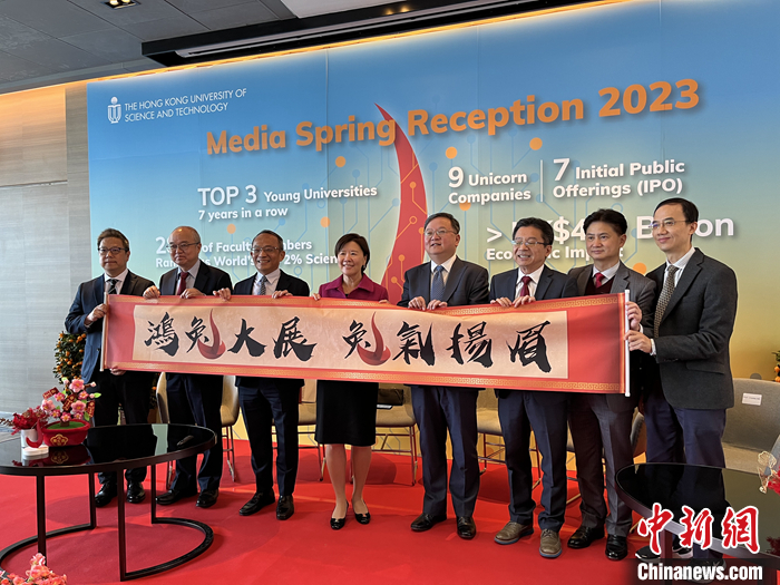 香港科技大學(xué)2月7日舉辦傳媒周年聚會(huì),科大校長(zhǎng)葉玉如(左四)公布,科大將啟動(dòng)30周年策略招聘計(jì)劃,將在六大科大重點(diǎn)發(fā)展領(lǐng)域招聘30名副教授或以上一流人才。 圖/中新社記者 韓星童