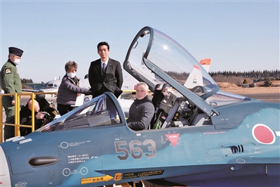 斯托爾滕貝格試坐日本F-2戰(zhàn)斗機的駕駛艙。