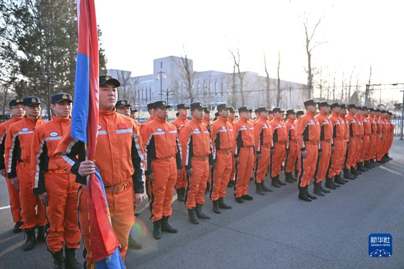 2月7日,中國救援隊在首都機場整裝待發(fā)。