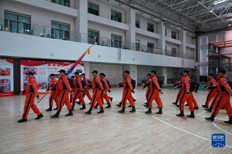 2月7日,中國救援隊隊員在北京大興消防訓練基地準備出發(fā)。